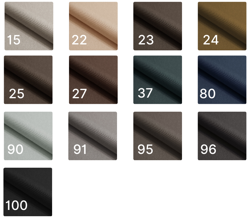 Tkanina miła w dotyku odporna na płowienie. Gramatura: 350 g/m² Odporność na ścieranie: 37 500 cykli