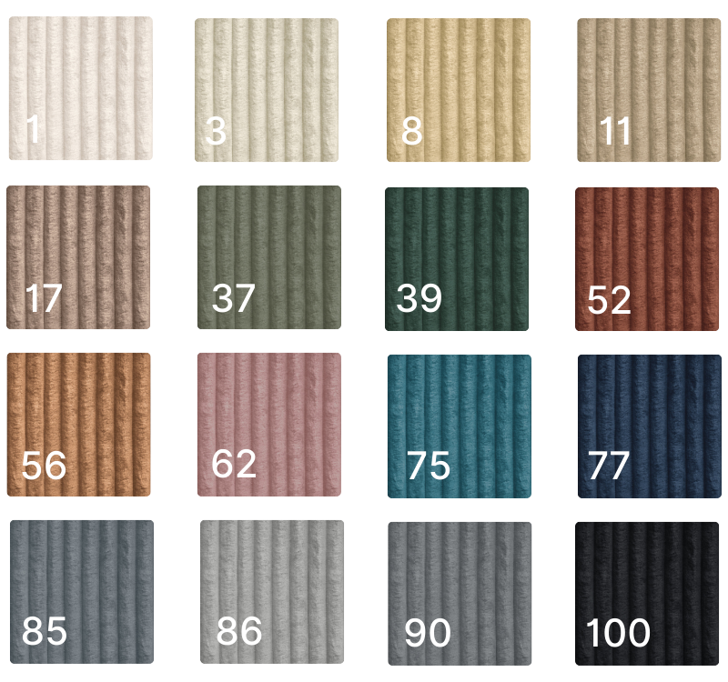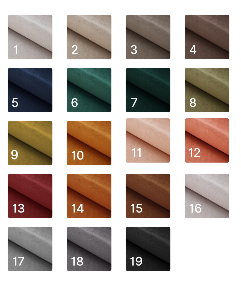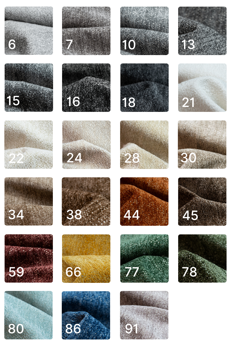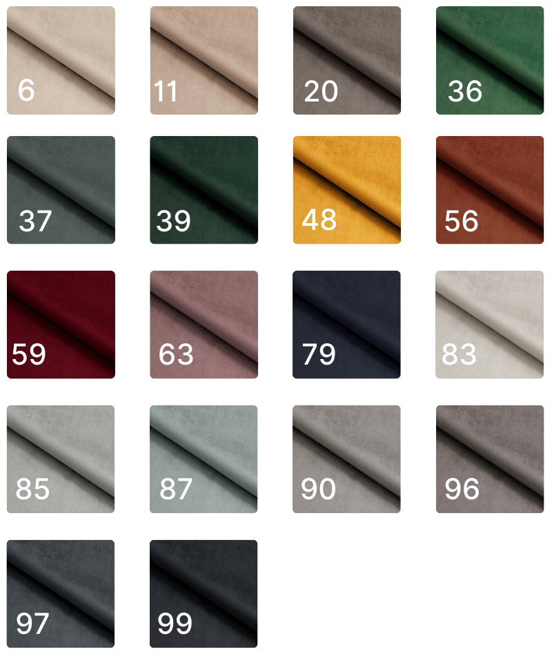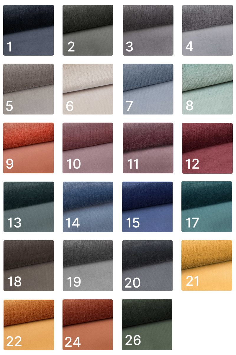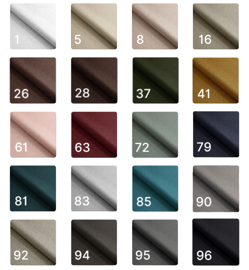 Tkanina przyjemna i aksamitna w dotyku. Gramatura: 320g/m² Odporność na ścieranie: 100 000 cykli