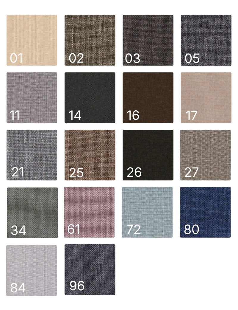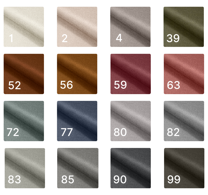 Tkanina miła w dotyku z wysokim komfortem użytkowania. Gramatura: 280g/m² Odporność na ścieranie: 100 000 cykli