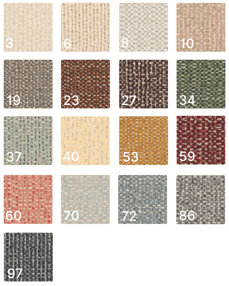 Tkanina miła w dotyku z unikalnym efektem splotu. Gramatura: 350 g/m² Odporność na ścieranie: 30 000 cykli