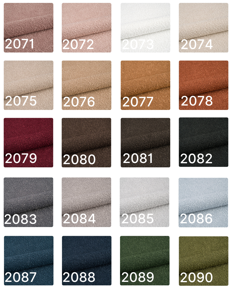 Tkanina boucle z pętelkową strukturą niesamowicie odporna na ścieranie. Gramatura: 350 g/m² Odporność na ścieranie: 100 000 cykli