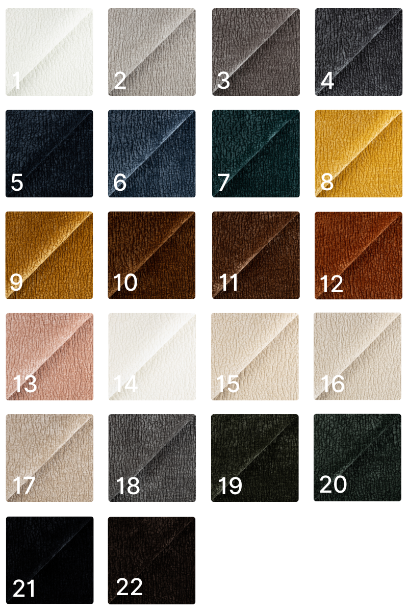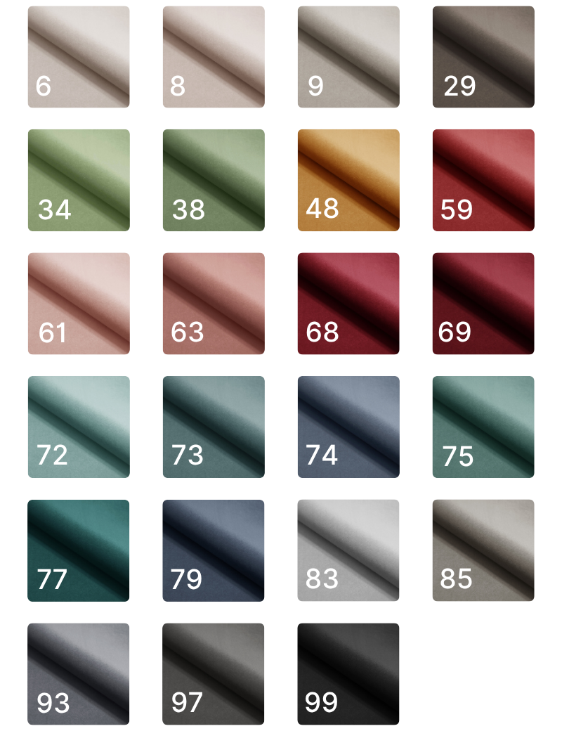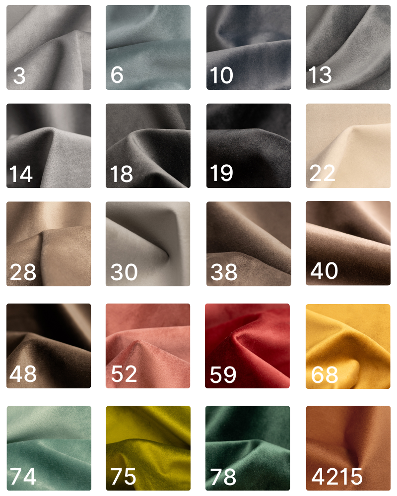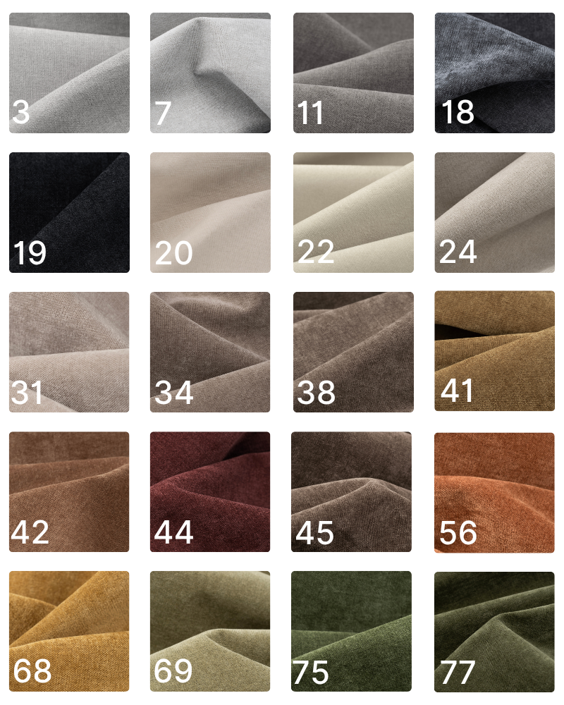 Tkanina przyjemna i aksamitna w dotyku. Gramatura: 320g/m² Odporność na ścieranie: 100 000 cykli