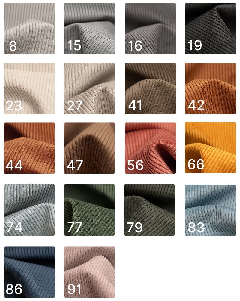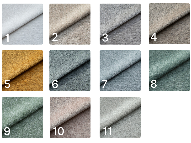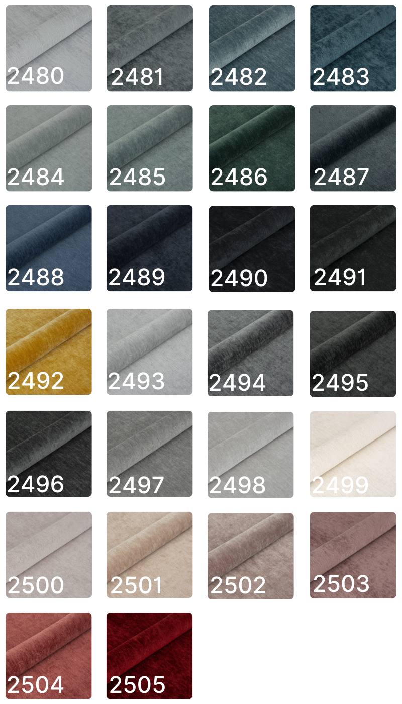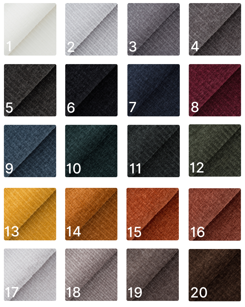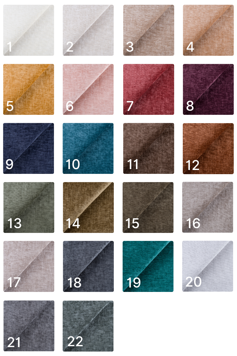 Tkanina przyjemna i aksamitna w dotyku. Gramatura: 320g/m² Odporność na ścieranie: 100 000 cykli