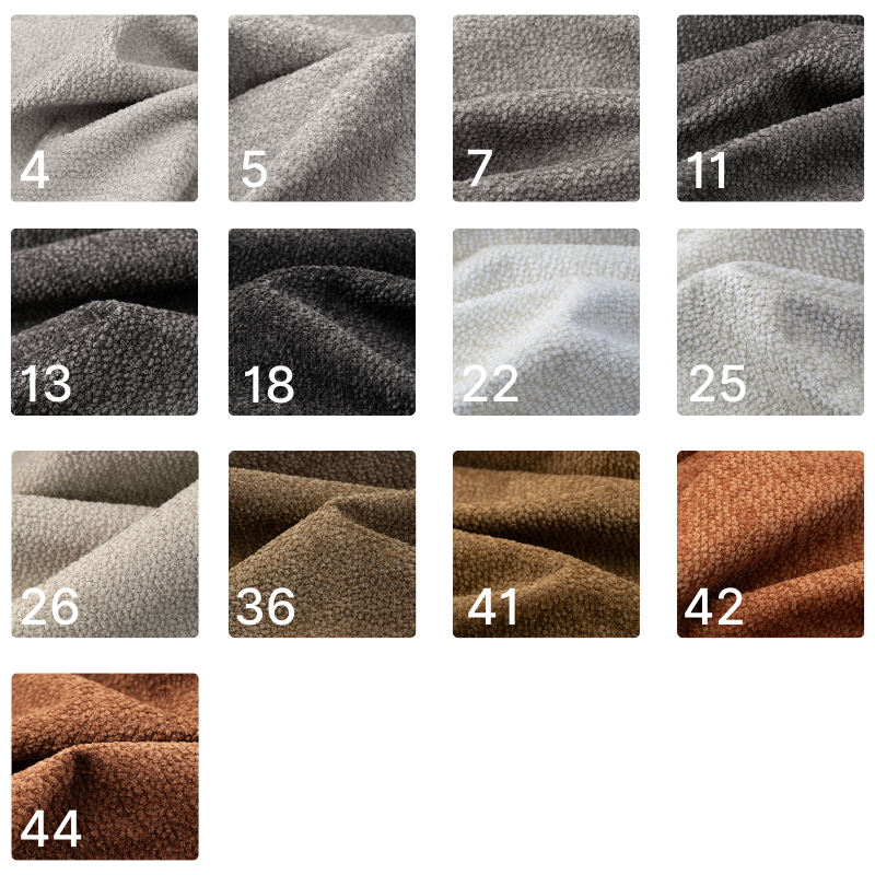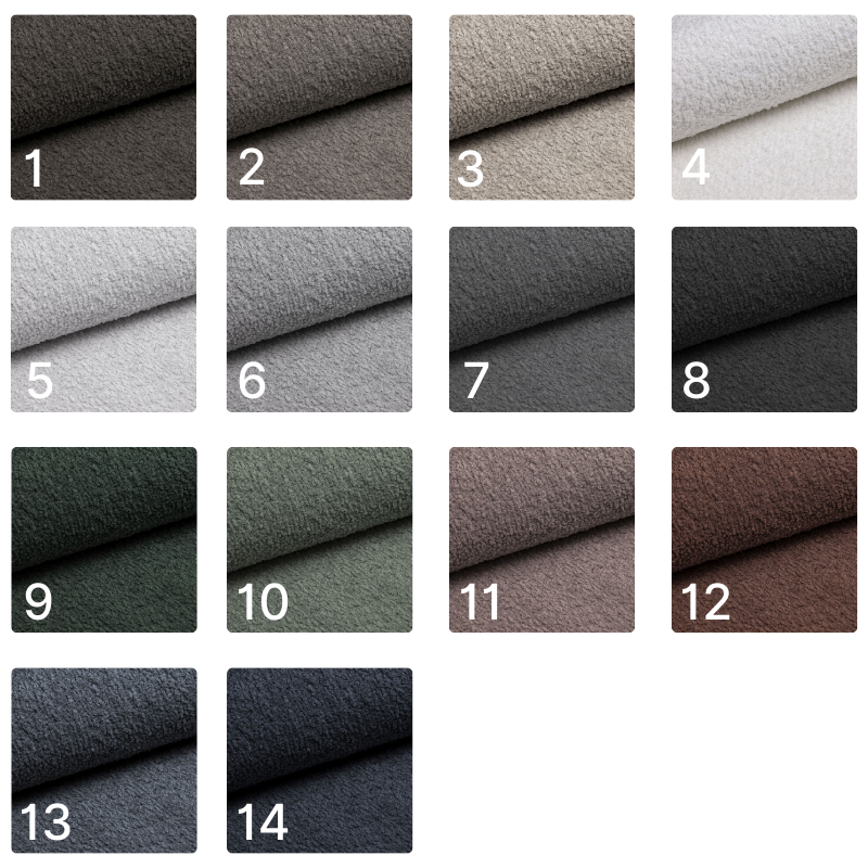 Tkanina boucle z pętelkową strukturą niesamowicie odporna na ścieranie. Gramatura: 350 g/m² Odporność na ścieranie: 100 000 cykli
