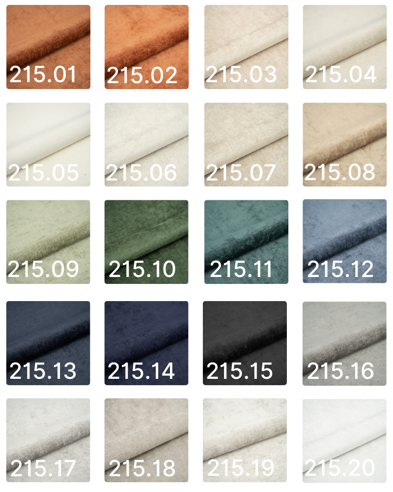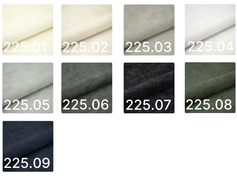 Tkanina miękka i aksamitna w dotyku. Odporna na ścieranie. Gramatura: 320 g/m² Odporność na ścieranie: 50 000 cykli