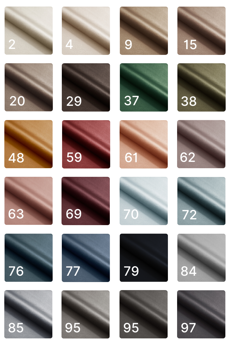 Tkanina miękka z połyskiem. Gramatura: 240g/m² Odporność na ścieranie: 45 000 cykli