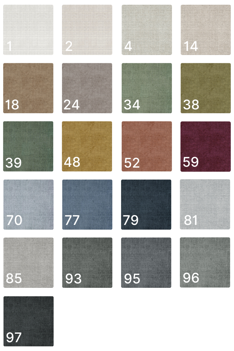 Tkanina przyjemna w dotyku i odporna na ścieranie. Gramatura: 370g/m² Odporność na ścieranie: 45 000 cykli